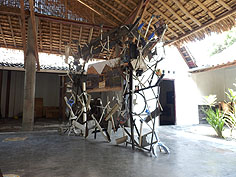自然から抽出した素材と、ホモサピエンスが生み出した生活必需品のゴミをパラレルさせて制作された壁に、